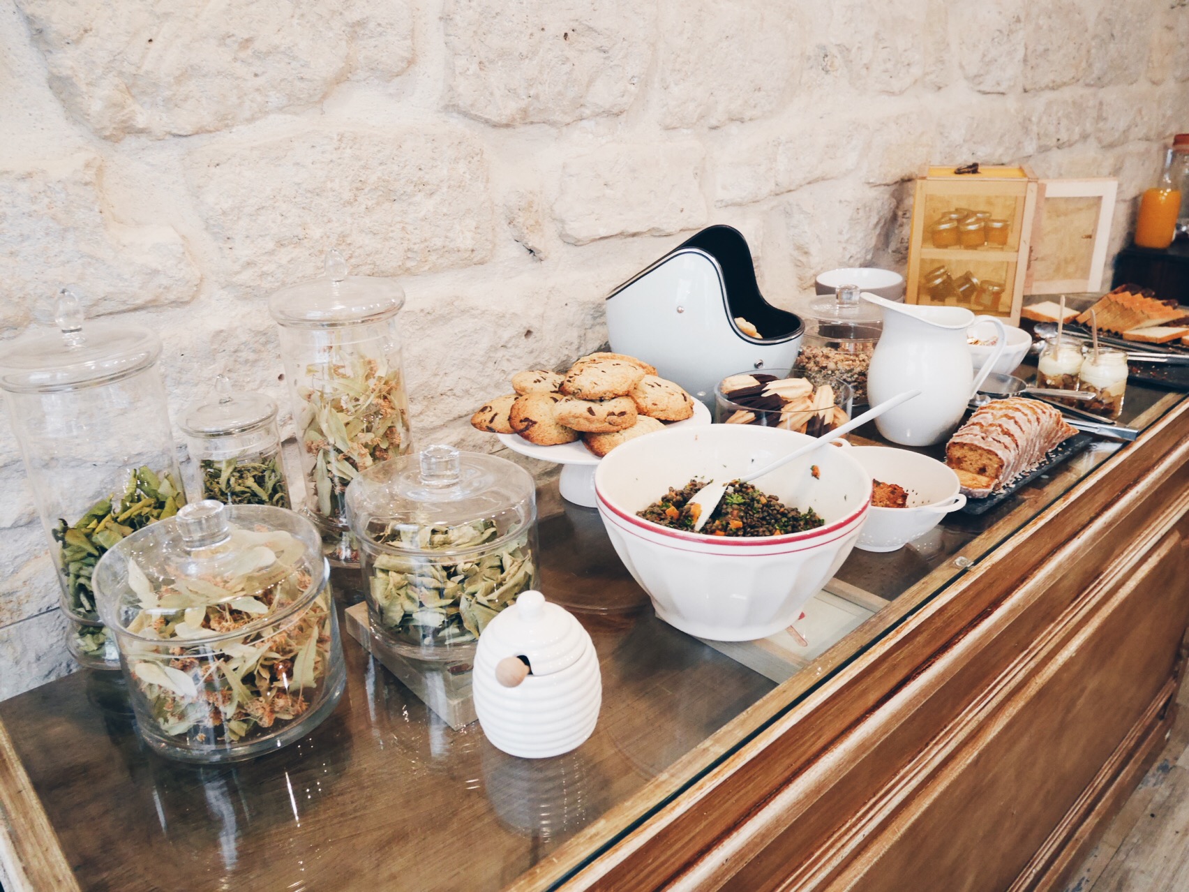 A couple of weeks ago me and my friend Edith tried out a special patisserie here in So-Pi called Laurent Favre Mot. We were there on a Sunday and wanted to eat the cheeseburger-cookies but on Sundays they only serve brunch. We did not mind and we also got to be served by Laurent himself, a charming, hipstery bearded guy with a strong franglish. He explained to us that we could ravage the buffée with cookies and sweet bread and he would serve us different brunch dishes the kitchen would come up with. He basically spared us the agonizing act of choosing what to eat.
