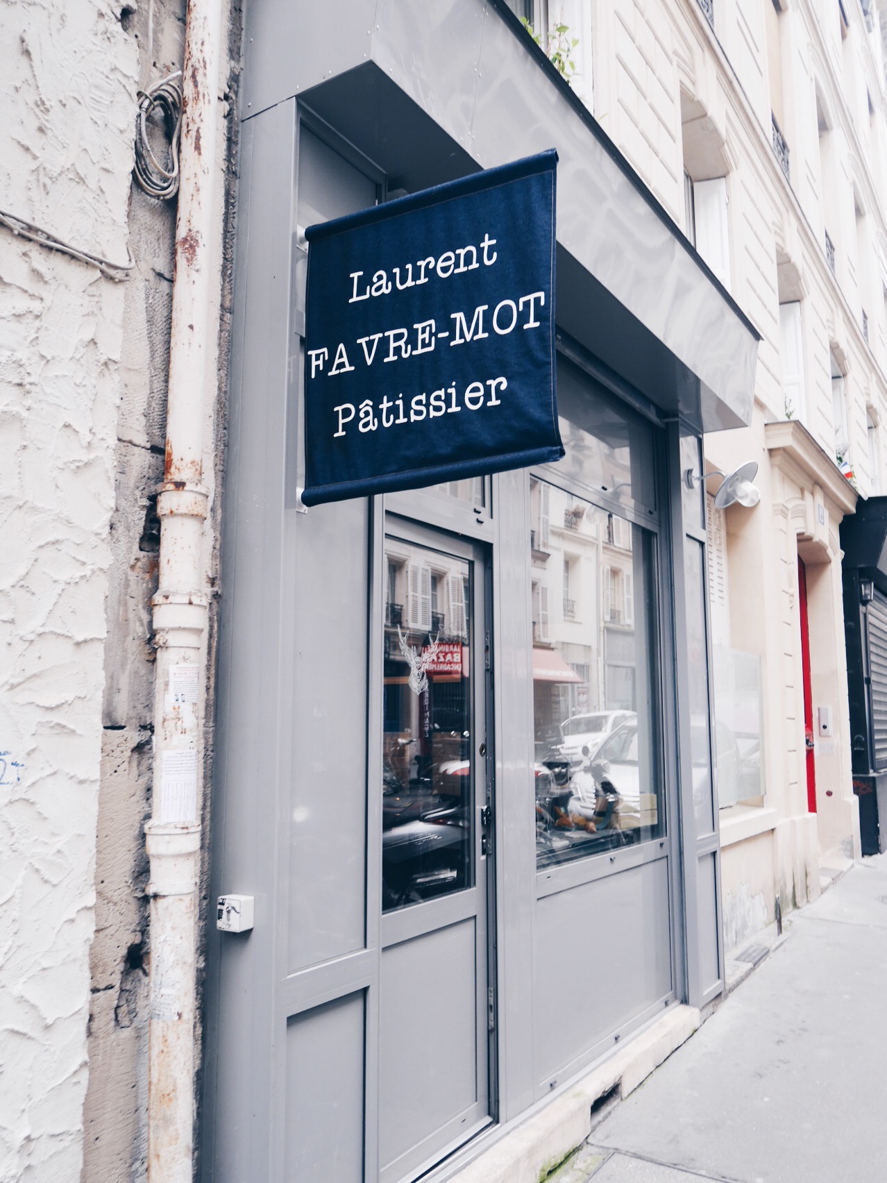 Jag och Edith, min fd Gina-kollega och numera granne och nyfunnen vän här i So-Pi testade härom söndagen Laurent Favre Mot, ett lite annorlunda patisserie som ligger på en tvärgata till Rue des Martyrs (mitt absoluta favoritområde). Vi testade söndagsbrunchen som gick på 30€, men där i ingick också upplevelsen av att serveras av Laurent själv. Laurent är en mycket hipstrig och rolig man som på bruten engelska förklarade för oss att det skulle komma ut lite olika brunchrätter från köket, beroende på vad DE ville bjuda på. Vi skulle bara ta det lugnt och härja loss bland kakorna och briocherna på bänken. Ajaj kapten!