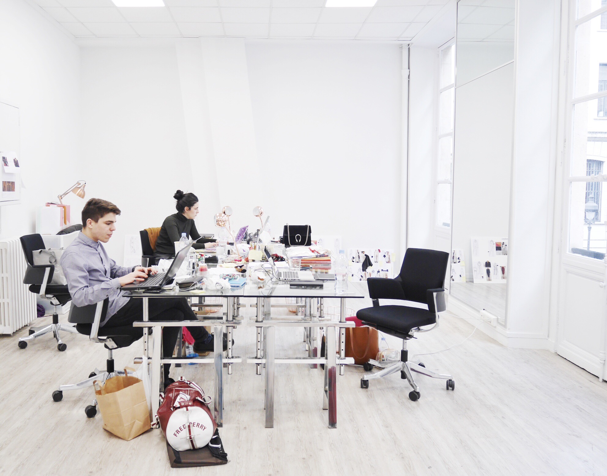 Here’s a picture of the office part of the studio. Victor and Clara are concentrating hard on the work and it’s time for me to join them. Doing flat sketches all day long!