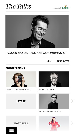 En app fylld med intervjuer med skådespelare, designers och andra kreativa och kloka människor som dessutom är gratis? Japp det har du här! Både Yohji Yamamoto och Raf Simons ger sin syn på mode och en massa andra coola människor pratar om annat också så klart. Ladda ner här!